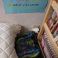 子供のおもちゃをフロントで借りられるところです。銭湯という中で、どれだけ他のお客さんの理解があるかは不明ですが、とても良いサービス。