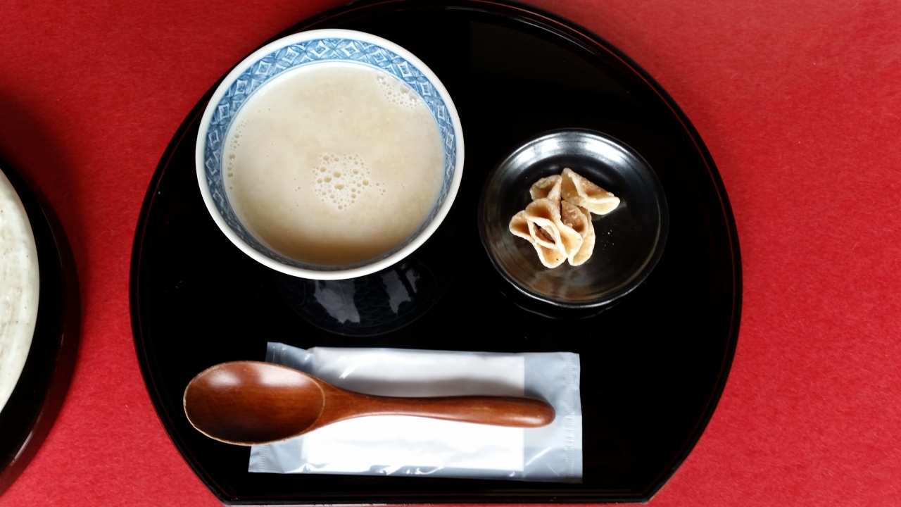 二条城内にある茶室「和楽庵」に店舗を構えています.雨も上がり,寒くはありませんでしたので,外で甘味をいただきました.眼前に広がる庭園「清流園」を眺めながら,世界遺産の中でひと時を過ごしました.注文した甘酒は麹が効いており,とても美味しかったです.何て贅沢な一服だったでしょう.