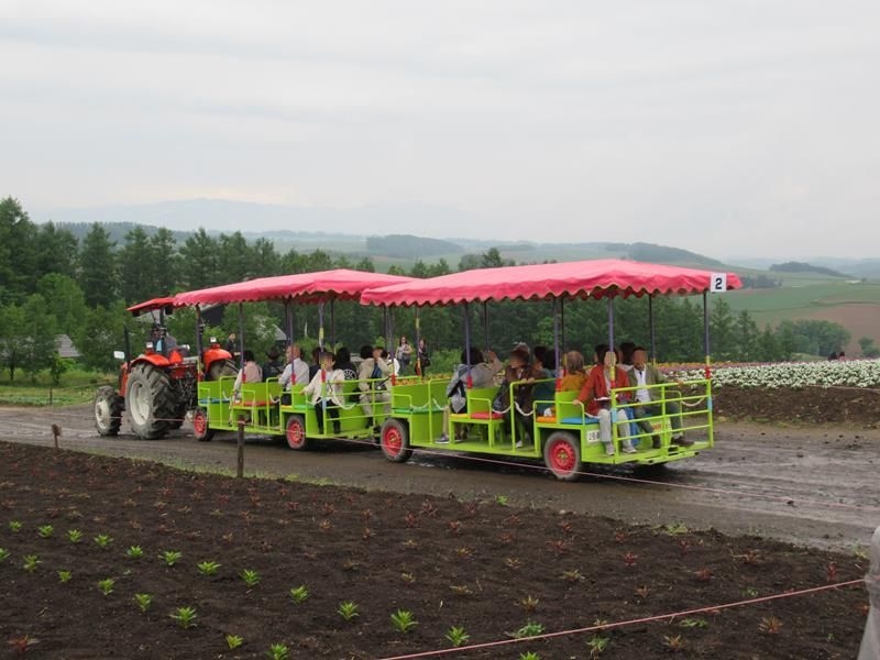 係員さんがけん引トラクターを運転しながら、園内の案内をしてくれて、適宜停車させたり、降りる機会くれて記念写真を撮ってくれたりもします。