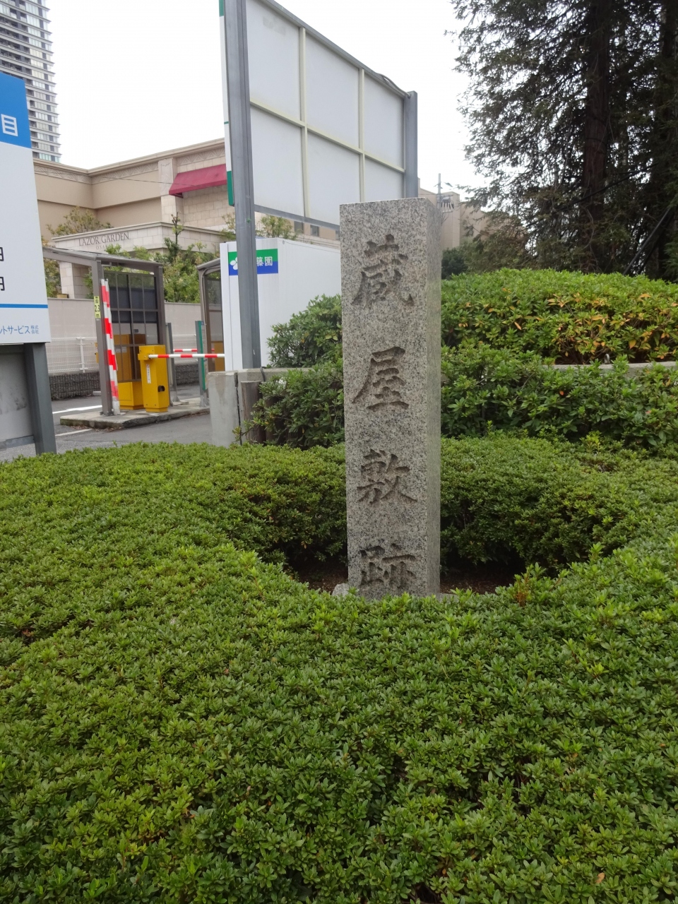 出入りているときに、植え込みの中にこの場所を示す石碑をみつけました。