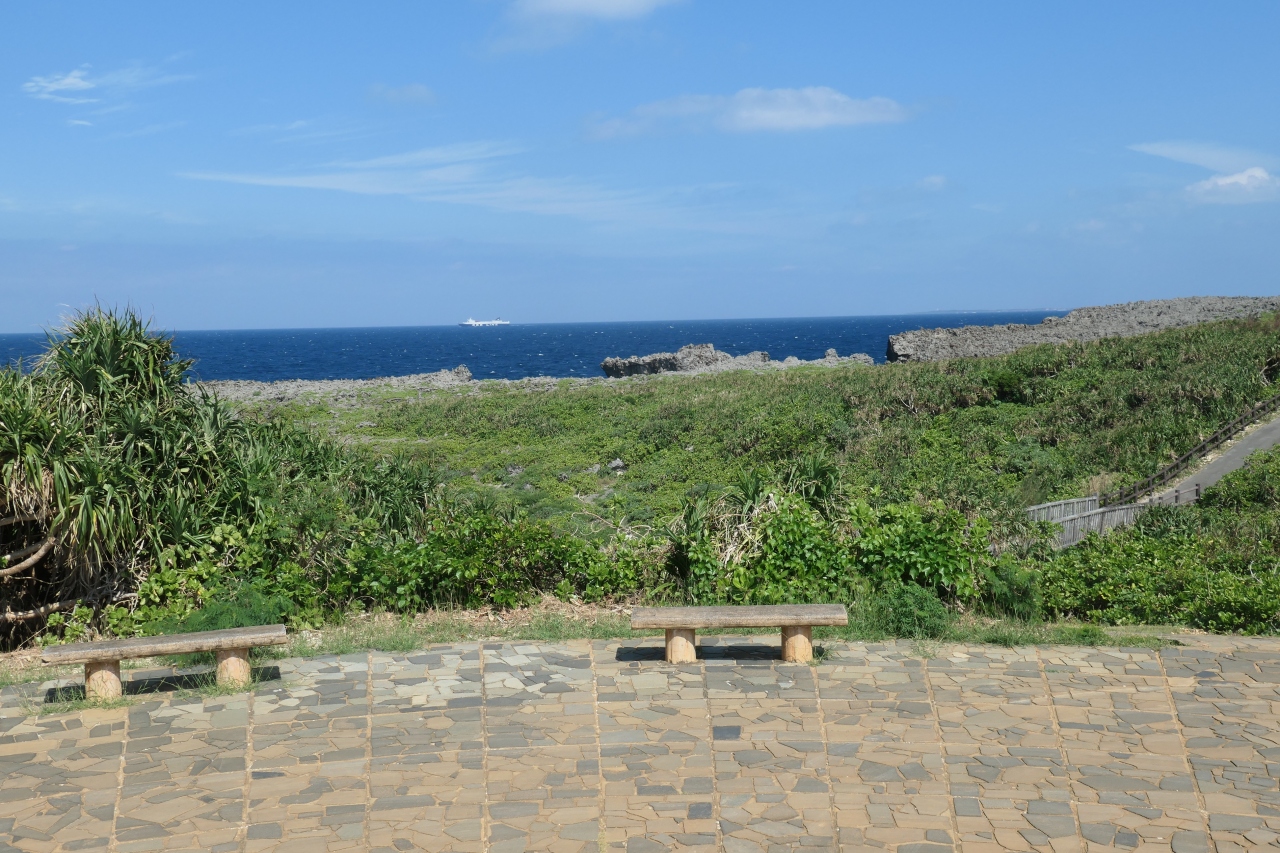 駐車場もある整備された公園で、海岸に近い場所に屋根付きの展望台がありました。公園には島の観光スポットを紹介するパネルが立てられており、トイレもありました。展望台の前方には青い海原が広がっています。ベンチもありますので、島巡りの途中で休憩する場所として適当だろうと思います。景観の良い岬です。