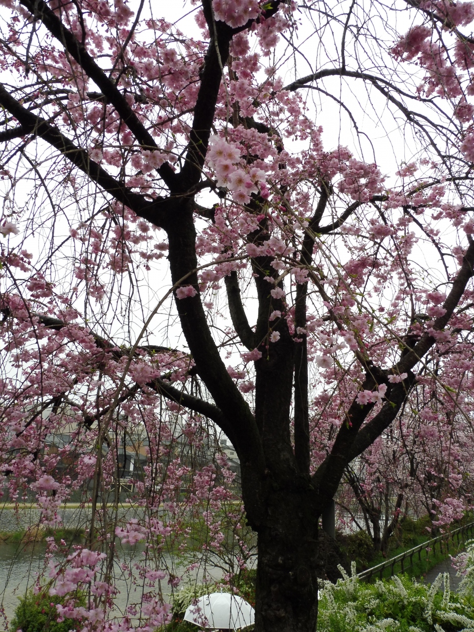 此処にはピンクの枝垂れ桜の並木道が川沿いに整備されています。雨でもピンクの色が綺麗だったので晴れているともっと鮮やかですね!