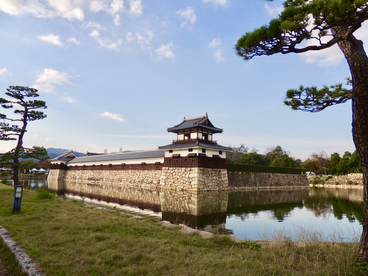 二の丸の東の端の櫓です。元々はこの2階に太鼓を置いて、時を知らせる為に太鼓を叩いたと言います。復元後も史実に基づき2階に置いてあったのですが、来場者の要望で1階に移動したそうです。実際に叩くこともできます。