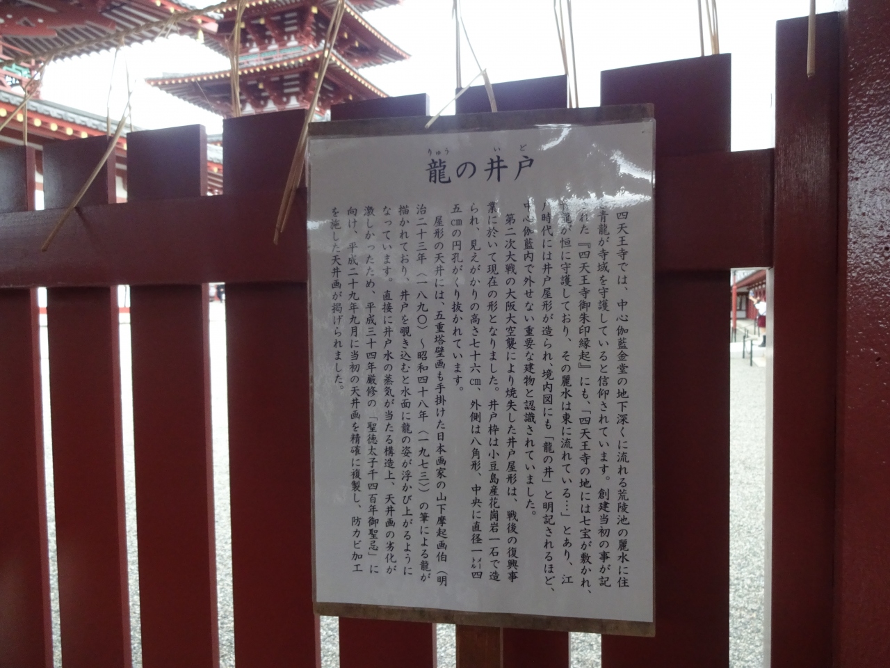 広い四天王寺の中でもその中心部回廊に囲まれた有料エリアの中にこの井戸があります。