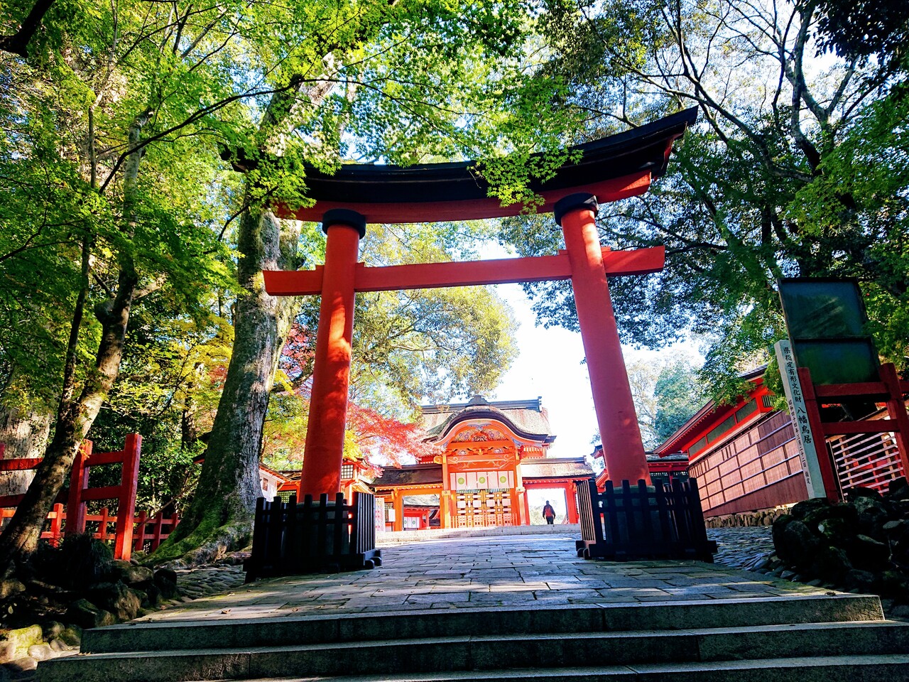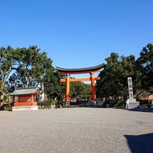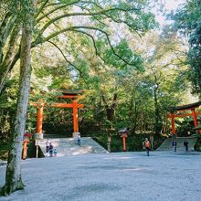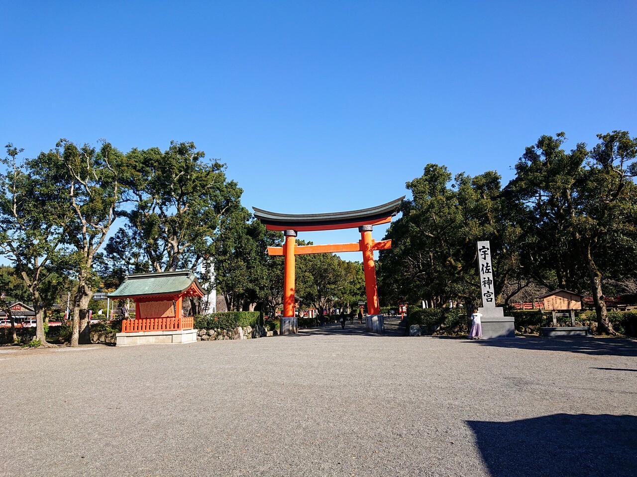 いずれも朱色に塗られた素敵な鳥居で、八幡造りの宇佐神宮に映えています。
