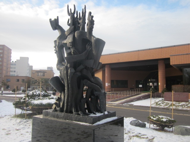 今回は、初冬の朝の常磐公園散策をゆっくりと楽しみましたが、公園内には旭川美術館もあって、特にこの施設付近には、個性的な屋外彫刻が色々と並んでいて、四季折々の風情を楽しむのに良いです。