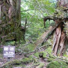 太鼓岩往復コースからの帰りに弥生杉コースを歩いて弥生杉を観ました。樹齢3000年、ナナカマドやサクラツツジなどいろいろな樹木を着生させた弥生杉は神々しい風格を醸し出していました。