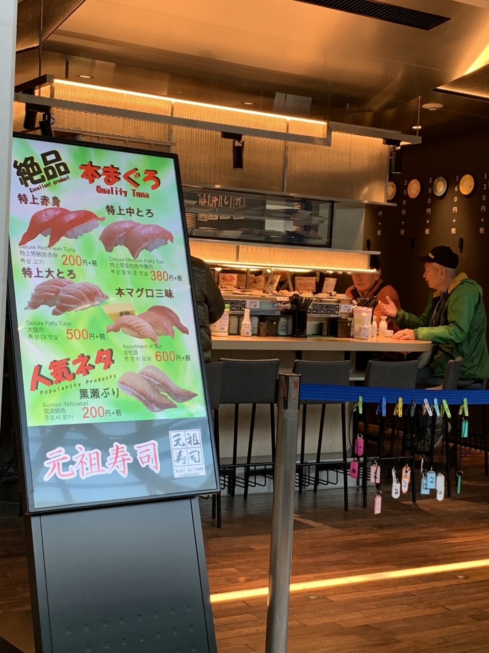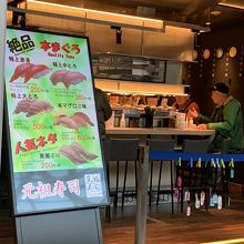 お皿によって値段は違いますが、ネタは新鮮でとても美味しかったです。カウンターの中で板前さんが握ってくださいますので、マグロ三昧やカニ三昧など注文しました。マグロは大トロもあり、ネタは豊富です。またお持ち帰り用のお寿司も売られていますので、時間がない場合はそちらも対応できます。