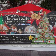 南のほう,松坂屋の近くはイベント会場としてよく使われます。2019年12月23日までは,「野小屋クリスマスマーケット2019」の会場になっています。でも一区画だけなので,割と狭い。
