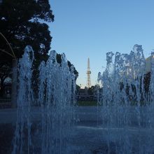 中央,バスターミナルのあったところは,バスターミナルを閉鎖して工事中です。このバスターミナルと南のイベント会場の間は,いつの間にか,平面的な噴水が出来ています。