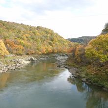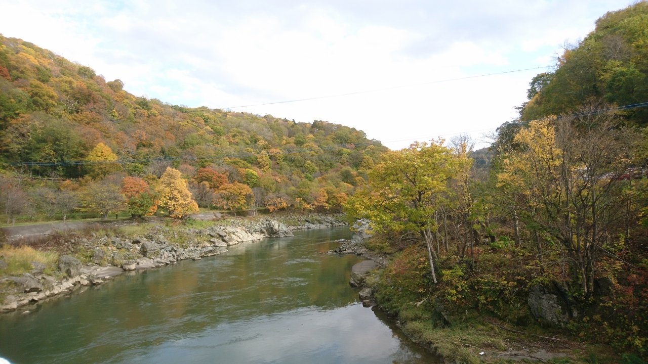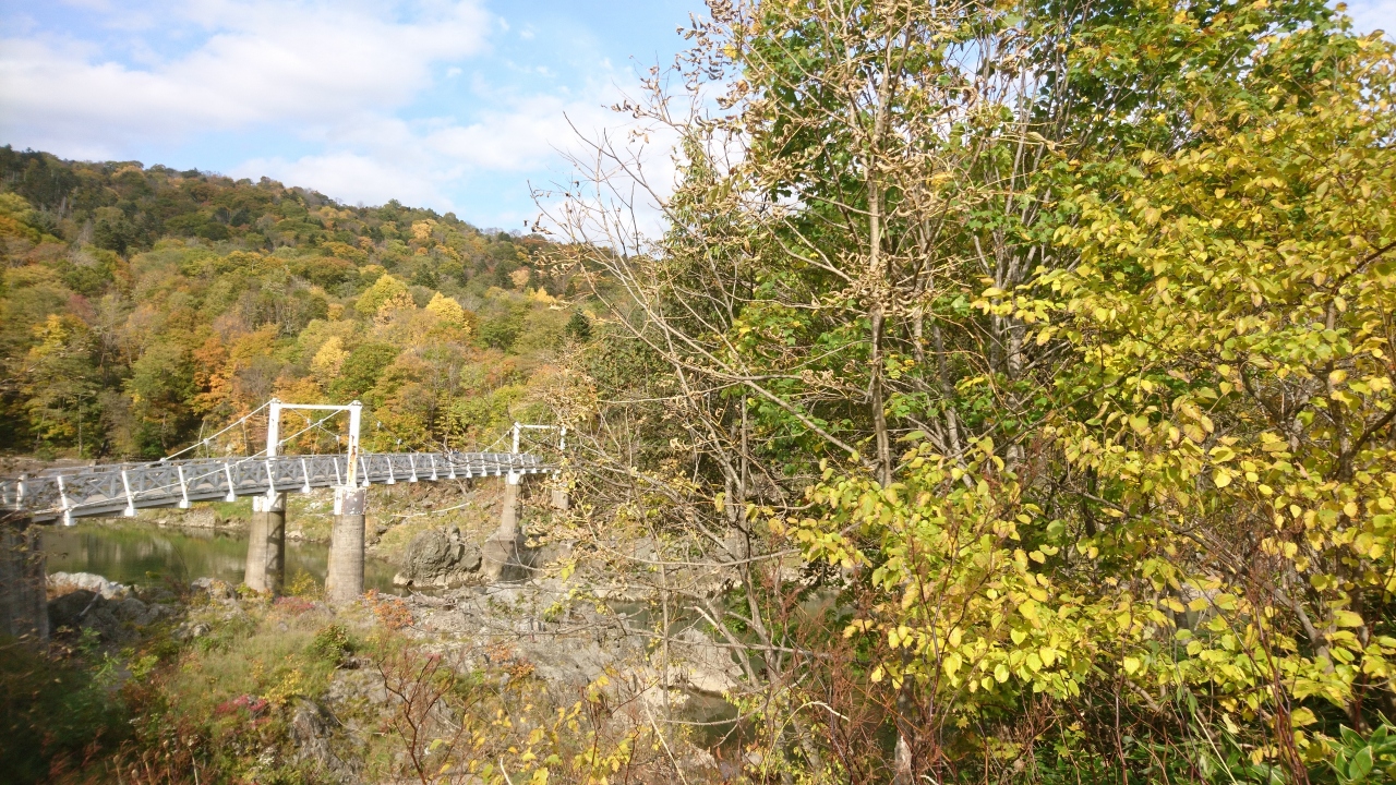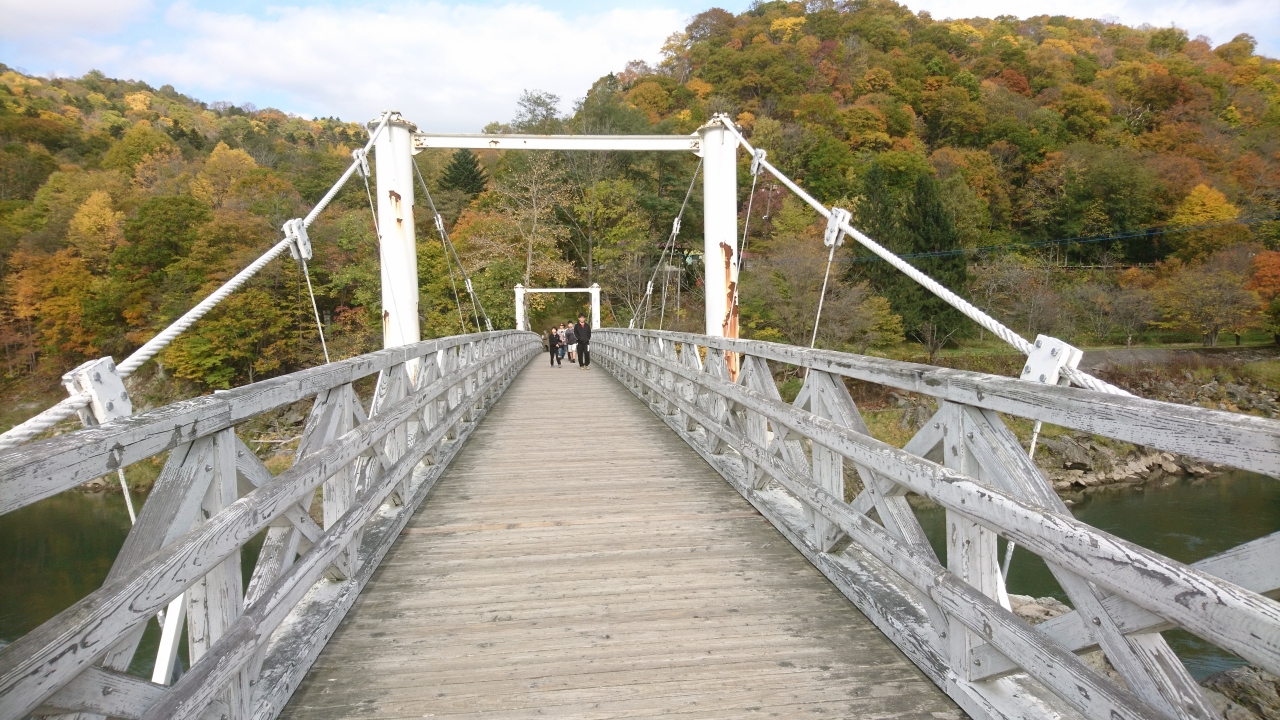 旭川から札幌に向かう国道12号線から少しわきに入ったところにある景勝地です。自然が豊かで、春から秋にかけては賑わいます。紅葉が見ごろで、ダテカンバの黄色い葉が見ごろでした。白いつり橋もきれいで、何度行っても飽きない場所です。