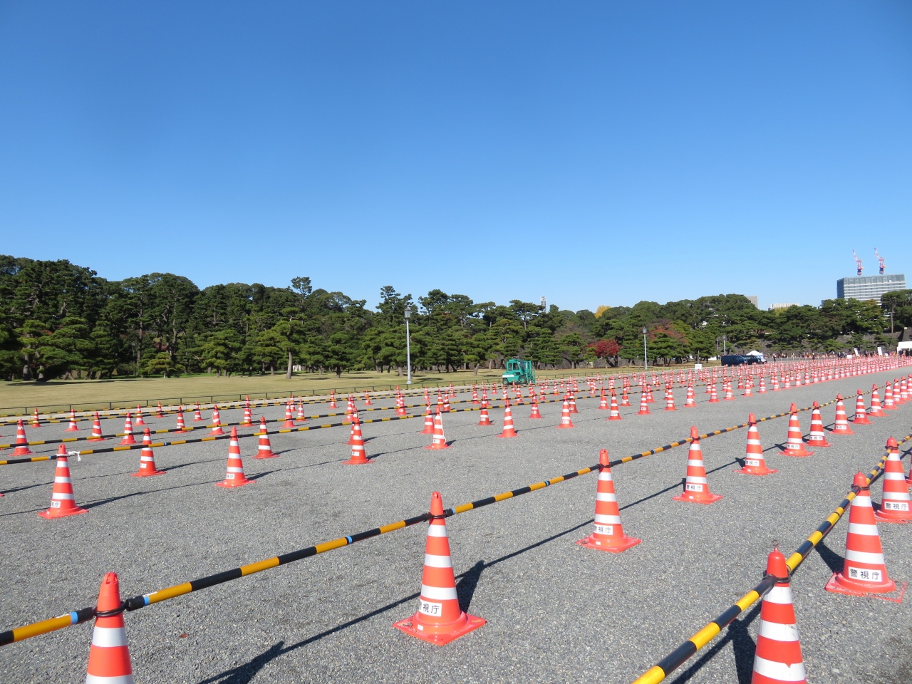 以前歩いた時は都会の真ん中とは思えない静かな外苑を歩いたのですが、この日は列を作るためのコーンが置かれ、警備員がいて、ととても賑やかでした。