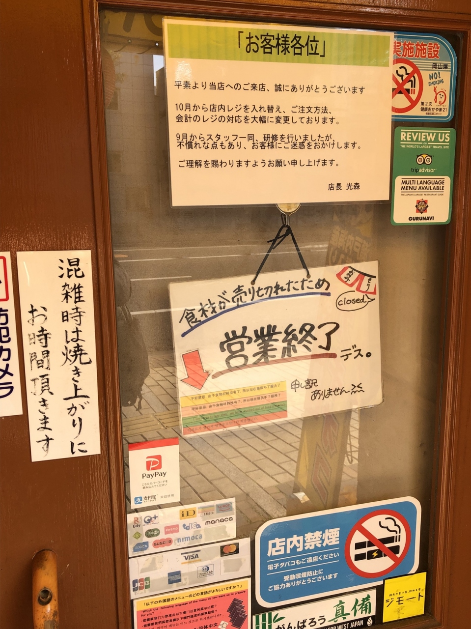 お店のテント看板には「ようこそ岡山へ!」とある…もう少し歓迎してよぉ