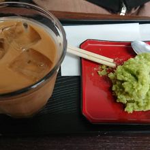ずんだもちのドリンクセットを注文しました。おもちがとてもやわらかかったです。ずんだの部分もほどよく食感を残しているのでとてもつぶつぶ感を楽しめました。甘さもちょうどよかったです。