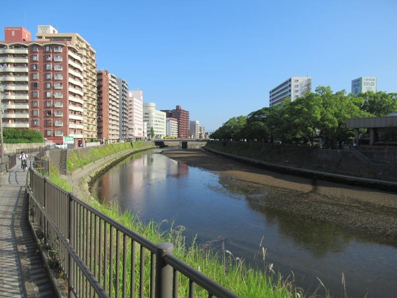 鹿児島市内を流れる甲突川。鹿児島中央駅から近い高見橋は鹿児島市電も通る橋です。