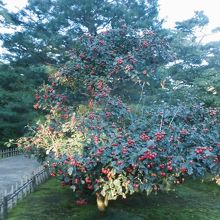 兼六園の霞ヶ池と瓢池から等距離にある場所あたりだったかと思います。ちょうど赤い実がついていて、ドンピシャの時期でした。桜も梅も椿も時季外れの10月でしたが、旬の季節を感じることができたのはよかったです。