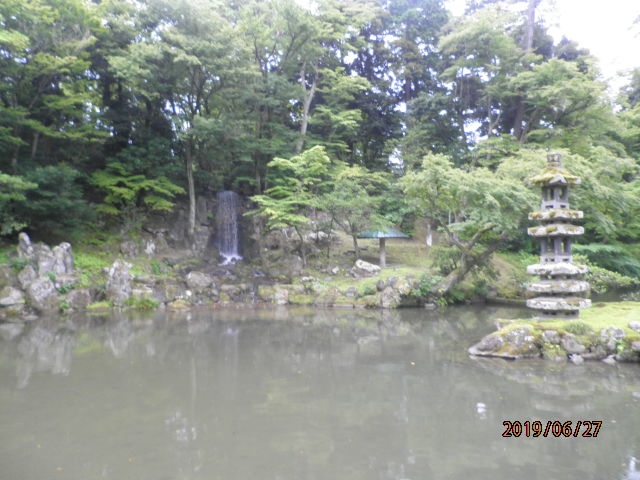 瓢池の中にある小さな島にたつ古い石の六重の塔です。海中から採掘した虫食い石であることから、海石塔の名前が付いたと言われているそうです。霞ヶ池周辺とは違う静かな雰囲気の中で、苔の生えた趣のある塔は、趣があります。