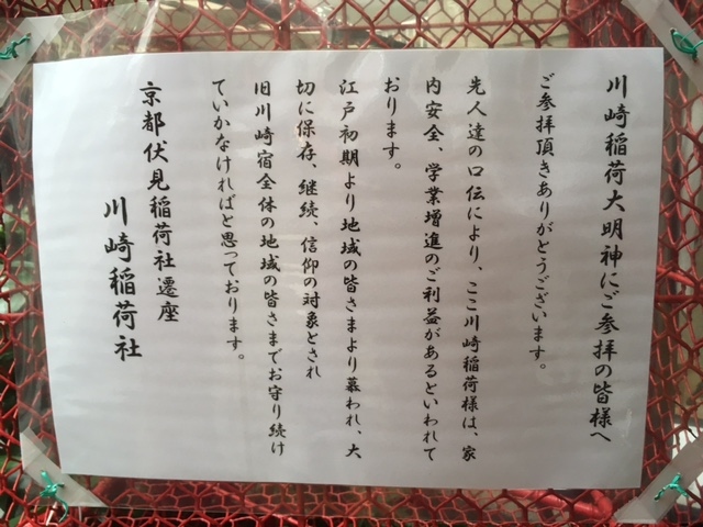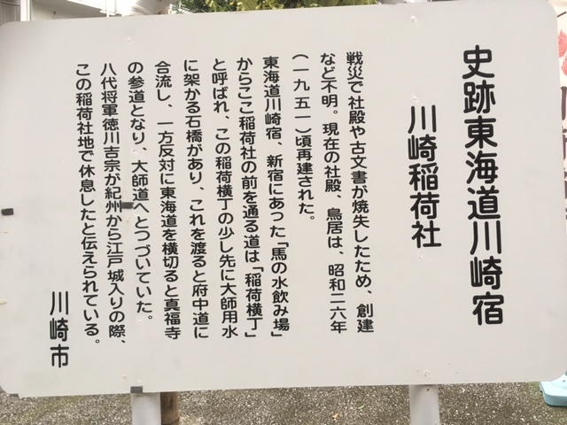 旧東海道を散策していてこのお稲荷様と出会いました。多摩川を渡り、川崎宿に入って10分くらいのところを右に入ったところです。