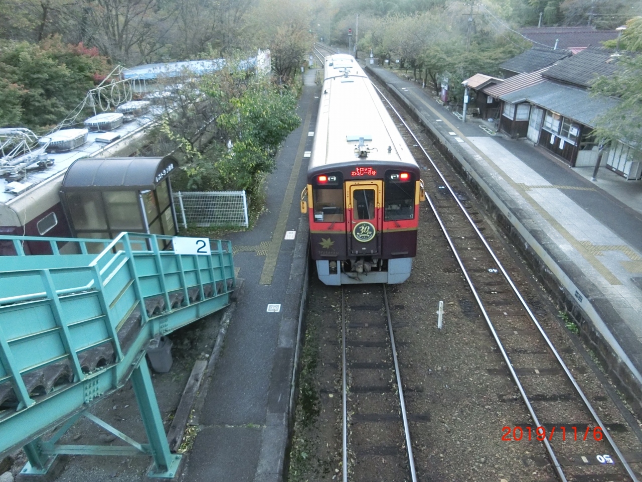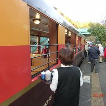 紅葉の季節の休日にはトロッコ列車が走っています。
