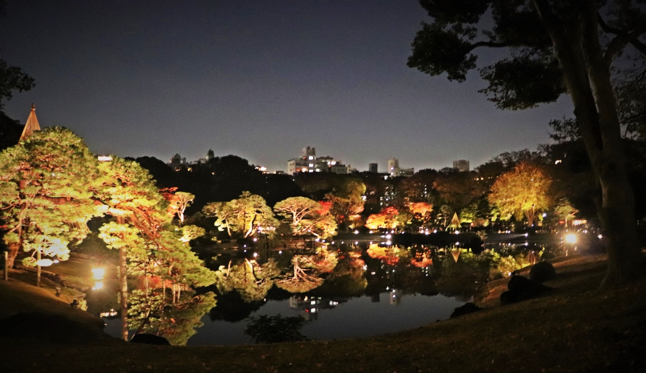 12月上旬は大名庭園の夜間ライトアップもあり、雪吊が施された木々のシルエットも美しく、日中も夜のライトアップも両方ともお勧めです。