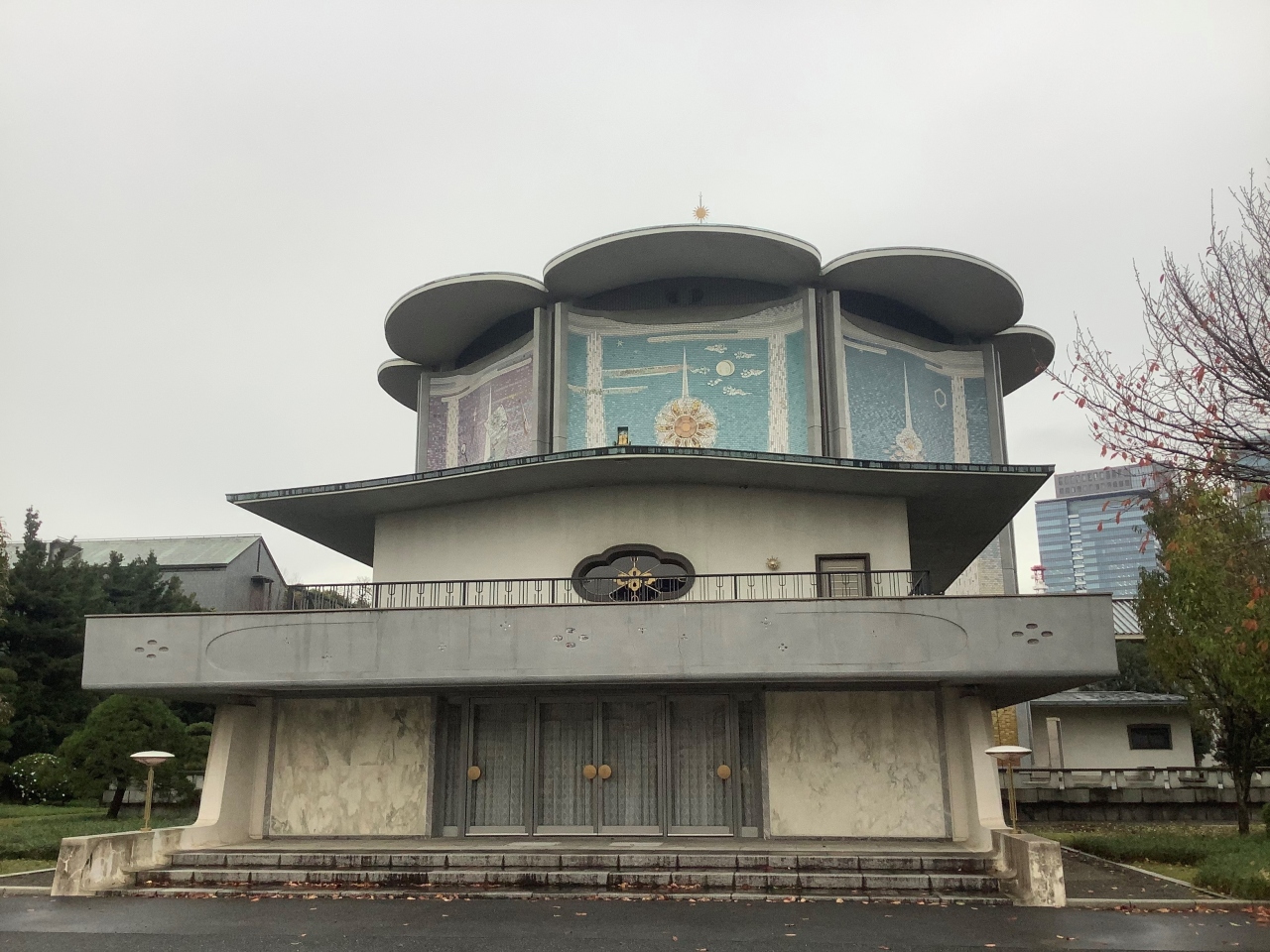 桃華楽堂は、皇居東御苑の中で特異な外観の建物でした。昭和時代の香淳皇后の還暦記念として建設された音楽堂とのことです。今はどんな音楽会に利用されているのでしょうかね。建物正面の上の方を見ると「お内裏様」が金色に輝いていました。香淳皇后のお誕生日は3月だったそうですから、桃の節句に因んで装飾されているのでしょうね。