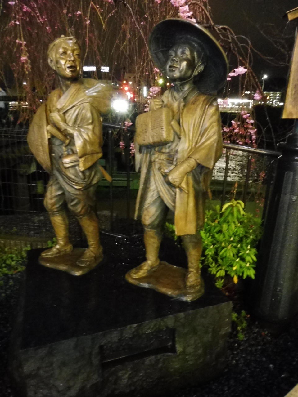 江戸時代の人気旅小説「東海道中膝栗毛」旅の主人公2人の像になります。江戸から伊勢への旅ですが京都にも寄ったんですね?
