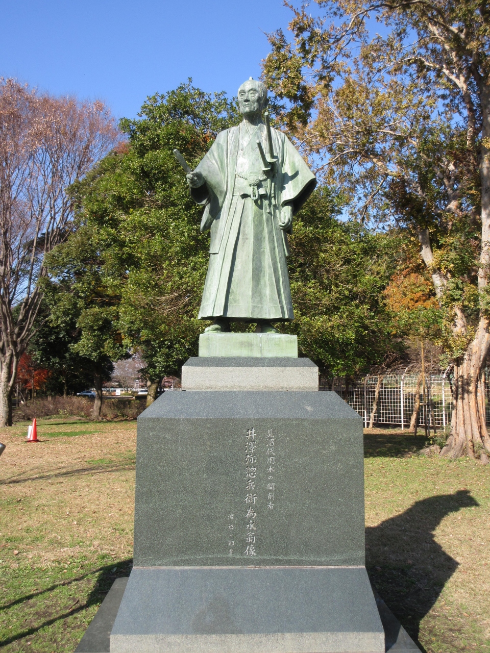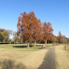 見沼代用水と加田屋川の間にある広い公園です。草地広場が広がっていて、水生植物が生えている池に野鳥の群れがいました。野鳥を撮る人やベンチで休む人がいる静かな公園です。公園内に鉄塔が建っていますが、鉄塔の存在が気にならないくらい広いです。訪れた時期、サザンカが咲いていて、メタセコイアの木々が茶色に紅葉していました。草地広場に見沼代用水路の開祖、井澤弥惣兵衛為永の銅像がありました。隣のさぎ山記念公園内の記念館でもらった見沼たんぼの冊子に江戸時代沼地を水田に開拓した様子が分かりやすく載っていました。地域の歴史を知りました。