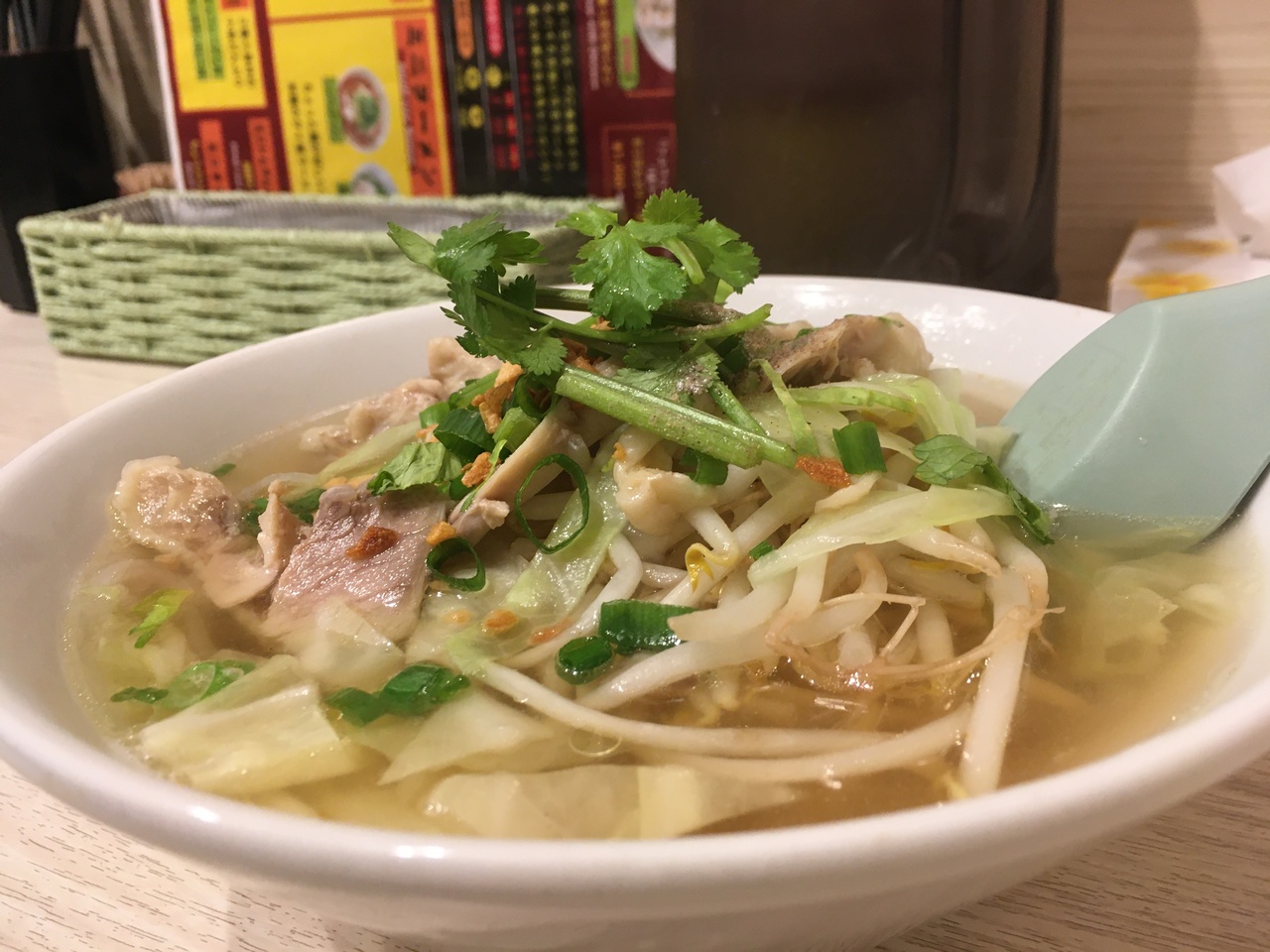 タイ人らしき店員に鶏ラーメンを注文し、店内に流れるタイ歌謡曲らしきものを聞くともなしに聞いていると、鶏肉のフォーっぽいものが登場。タイ料理なので香菜が入っており、その点では癖があるが、むしろ香菜好きな自分にとっては「香菜とあっさり」という希望通りの展開。問題があるとすれば、お椀にはたっぷり米麺が入っているので、食べても食べても麺が減らないことか。