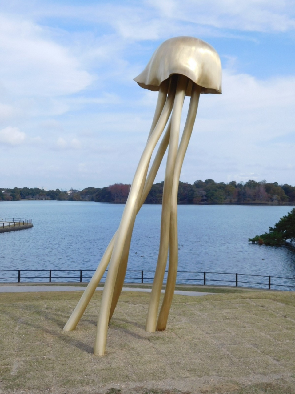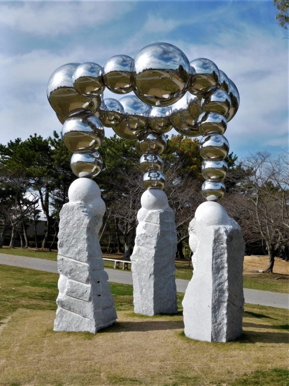 ときわ公園の彫刻の丘には2019年第28回のビエンナーレで賞を取った作品15点が展示してあります。