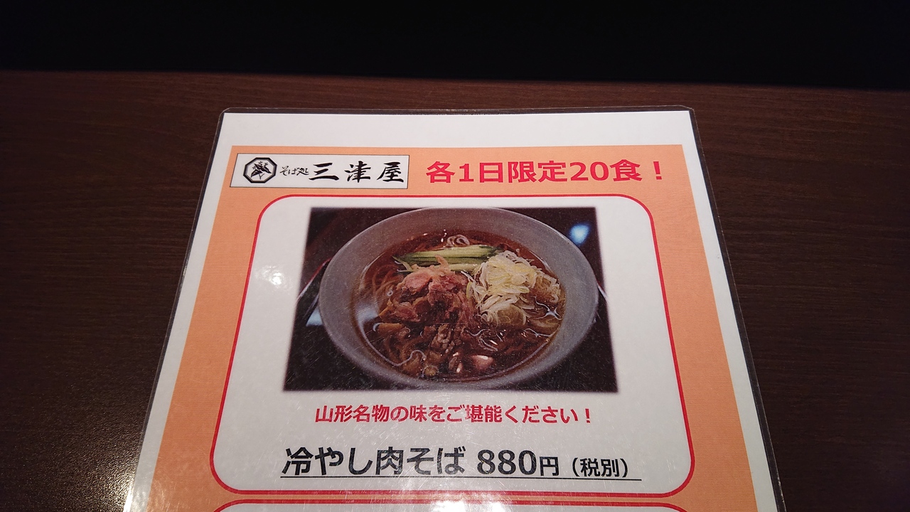 山形蕎麦の名店である三津屋が駅ビルに出した観光客向けのお店です。値段は少々お高めですが、名物の板蕎麦も食べることができます。この日は、20食限定で冷たい肉そばがあったので、冬にもかかわらず、いただきました!さっぱりとして、美味でした。