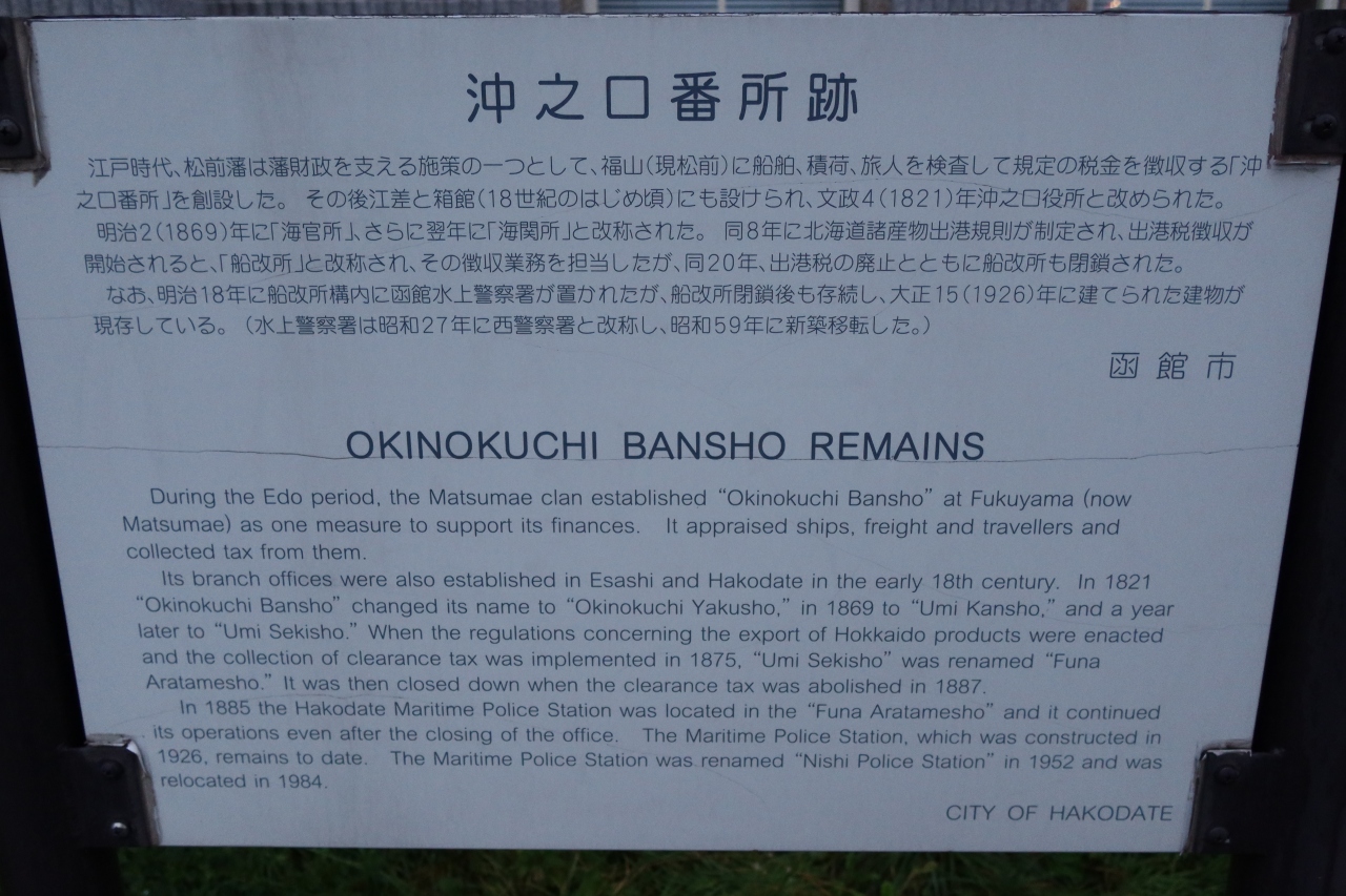 そらに、この建物の脇には沖之口番所、函館郵便役所跡の説明板や碑があり歴史を感じる場所でもあります。