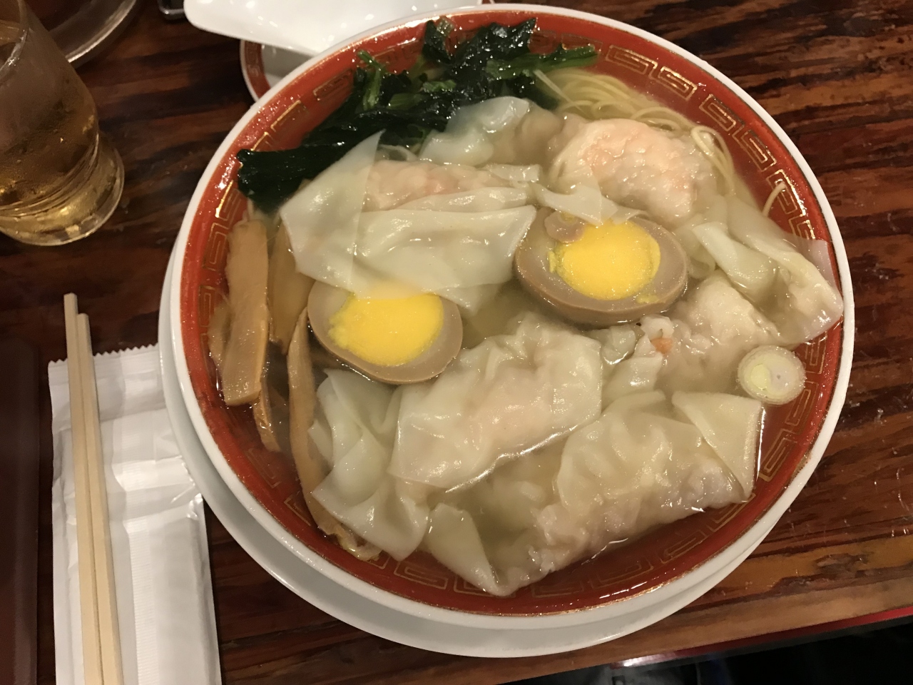 広州市場のワンタンメン、自分は好きな味です。香港で食べるワンタンメンに近い味です。固めの麺の普通のワンタンメンの塩味をいつも頼んでいます。エビワンタンメンもおいしいです。こちらも普通の麺のタイプが自分は好きです。