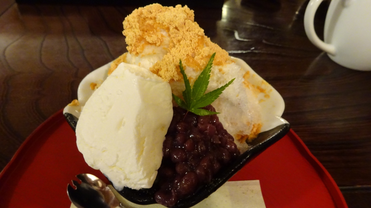 親戚と共に13時半頃行きました。松花堂弁当はさすがにこの時間だったので残数1ということで、私はかき氷をいただきました。和風茶屋らしくきなこが入っていて美味しかったです。ちょっとした小物等のお土産も販売されていました。屋敷内は琴が置いてあり、自由に曲を弾くことが出来ました。