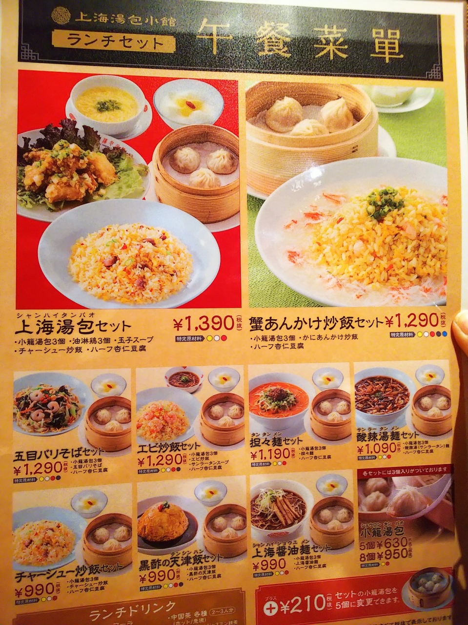 ランチのセットメニューは990円~、麺か米物に小籠包とプチ杏仁豆腐の組み合わせです。