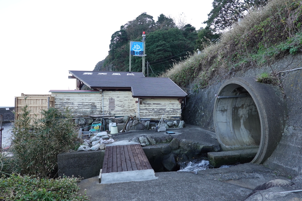 伊豆大川駅から海側に坂を下って徒歩10分、ミカン畑を抜けて土管の中をくぐってアクセスします。
