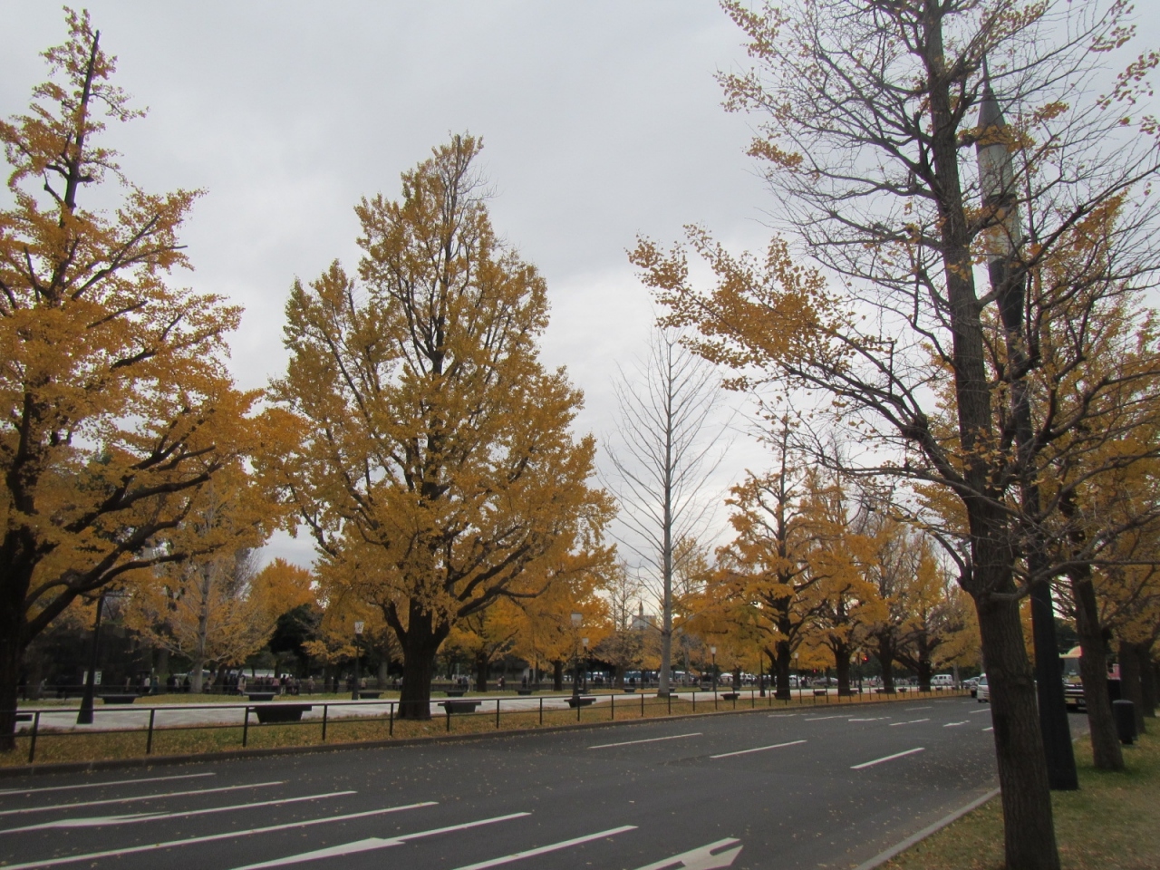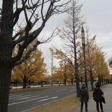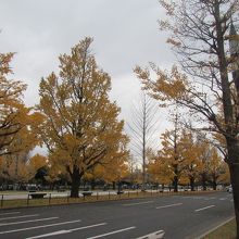 東京駅正面に皇居方面まで続く広い通りで、イチョウ並木になっています。