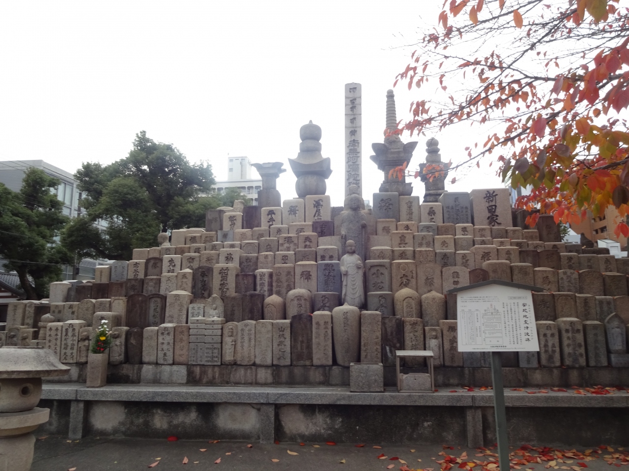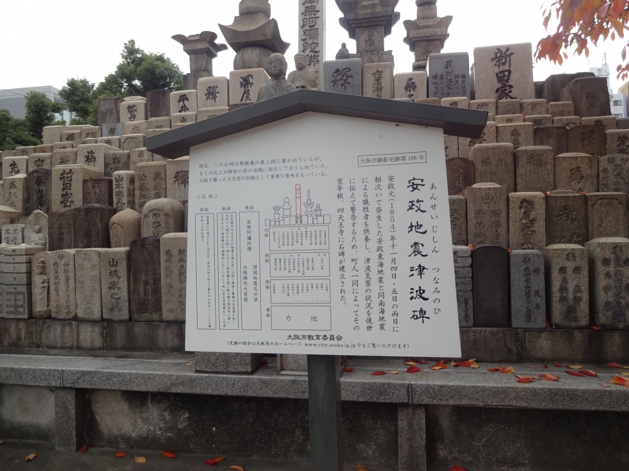 墓石も積み重ねられ、大災害を物語る。