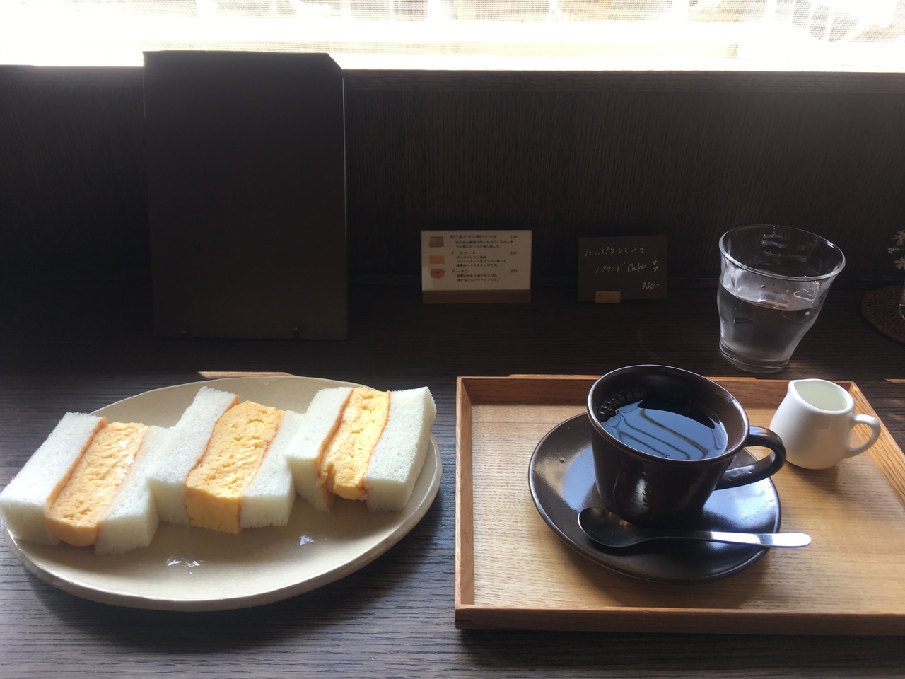 京都寺町二条上がるにあります。ハンバーグ屋さんの2階にある隠れ家的なカフェです。女性がお二人でやっておられるようです。狭いですがゆっくりできる店内です。玉子サンドが人気で、コーヒーも丁寧に淹れてくれて美味しいですヨ。
