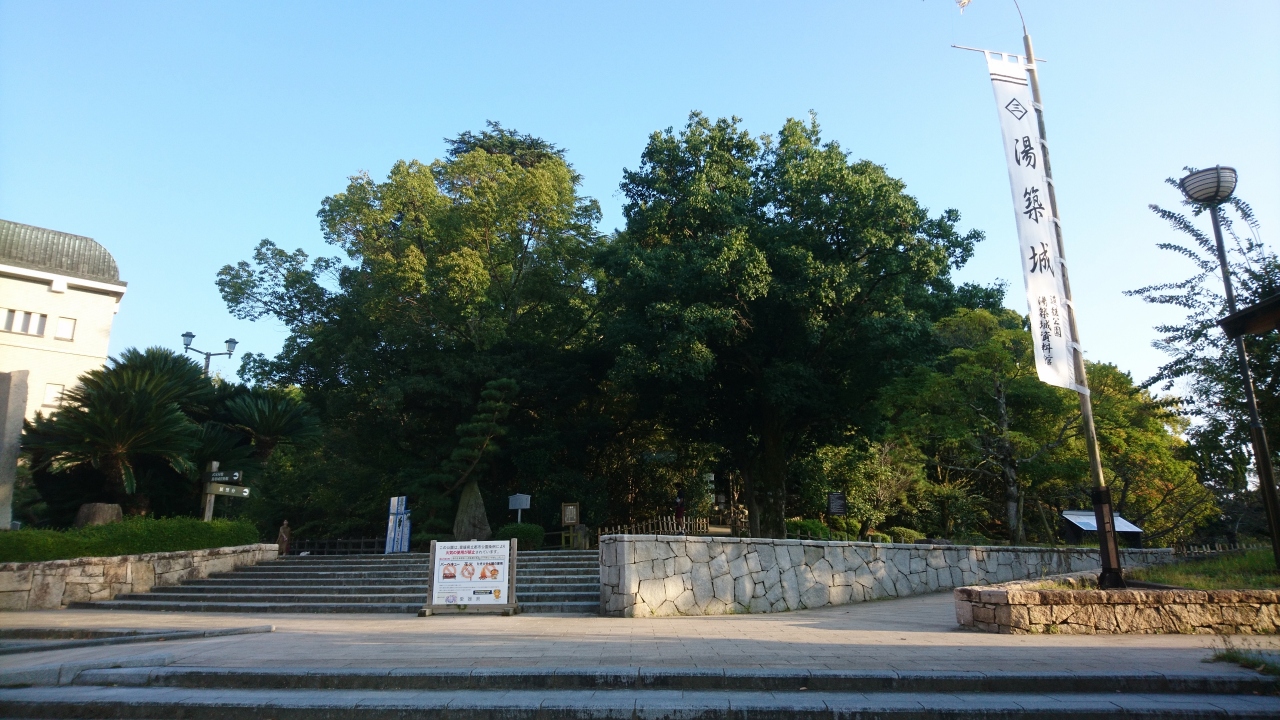 道後温泉の子規記念館に近い公園です。この公園は昔、城があったのです。その名も、「湯築城」。日本有数の温泉が湧くこの地にピッタリの名前です。1335年ころに河野通盛の代に築城されたとのことです。現在は、堀や土塁があるだけですが、資料館や復元された家屋もあり、親しみが持てる城址です。日本の100名城にも選ばれています。