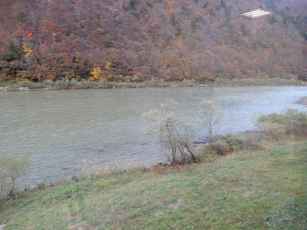 山形県の最上川中流域にある峡谷で日中は船下りが楽しめるようです。というのも夕方にここら辺を訪れたために行き交うボートはありませんでした。ただ、最上川沿いに国道が並行して走っており、山深い渓谷とあちこちでみられる木々の紅葉を、走りながらちらちらと眺められてそれなりに雰囲気を楽しめました。
