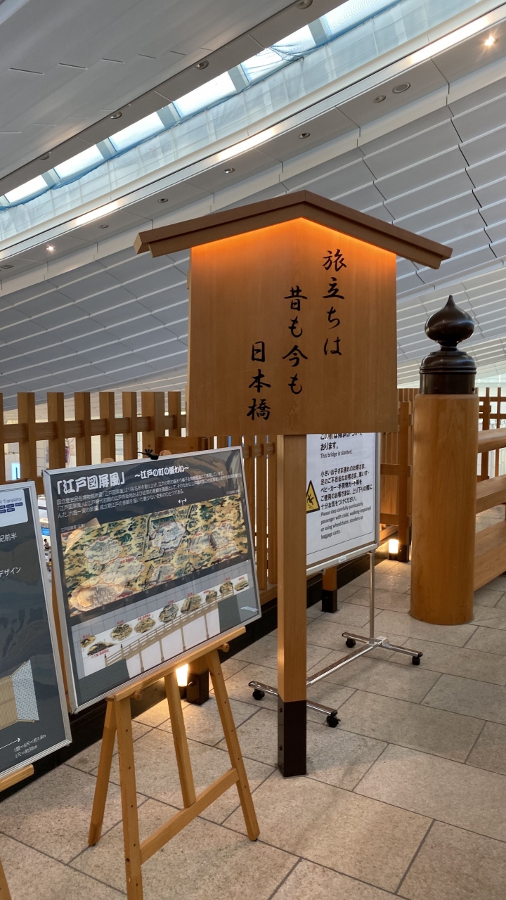 初代日本橋を模したはねだ日本橋。木製できれいな橋です。羽田空港国際線ターミナルにあるせいか、外国人の姿もよく目立ちます。このあたりまでくると繁忙期の空港でもそれほど人もいないのでゆっくり休むことができるエリアです。