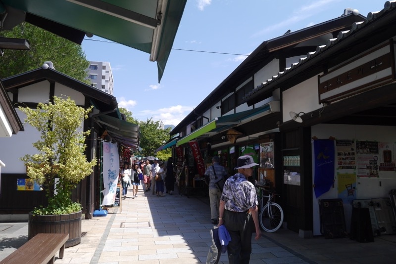 昔でいうなら城下町〜といったエリアにあり、細い路地にお土産やさんがひしめきあっている一画です。好みにもよると思いますが、個人的にはすこし観光客向けの感じが強すぎるなと思いました。かえる・がまがえるがイメージキャラクター(?)になっていました。お城好き以外にも、かえる好きにもおすすめできます。