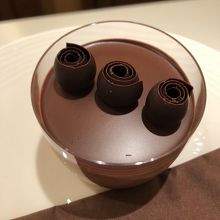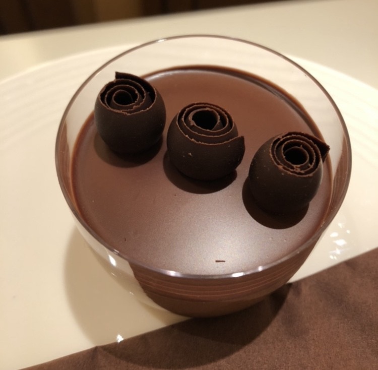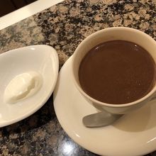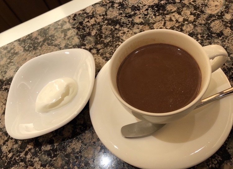 ホットチョコレートはそれだけで濃厚ですが、別添えで生クリームも付いてきます。クドクならないようムースにしましたが、想像よりもずっと濃くて深いチョコレートムースでした。