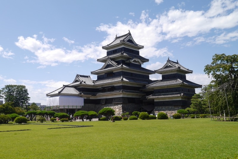 あくまでも“跡”なので、本丸御殿跡の大半が何のことを指すかというと…芝生です。残っているのは天守なので、松本城の有料エリアに入場し、そして天守へと続く道のあたりの広〜い芝生が本丸跡。ちょうど天気もよかったので、きれいな緑色をしていました。
