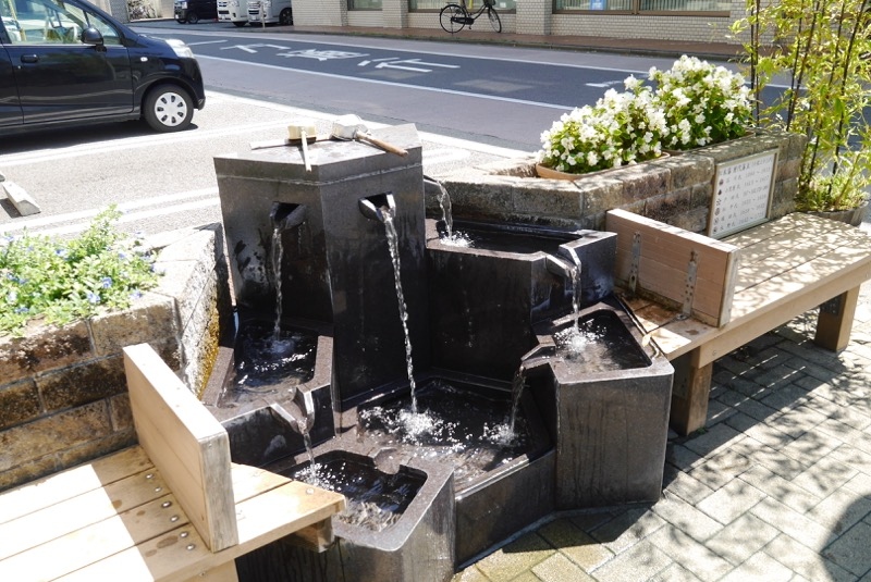 ここ以外のほかの井戸にも言えることですが、松本の湧水群のうち、井戸、と名前がついていても井戸っぽくない見た目の井戸もかなりあります。ここもそのひとつで、湧き水、といったかんじの井戸です。面白い形状をしていて、水が上から下へと流れてゆきます。