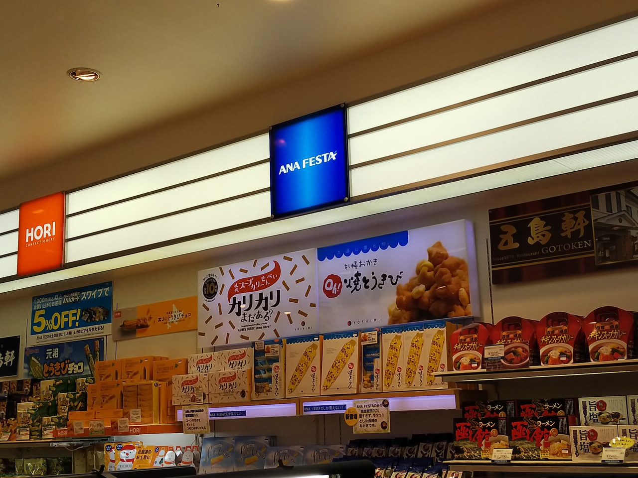 函館空港はお土産売り場が充実しています。何店舗もあるなかで奥のほうにあります。函館土産でおすすめなスナッフルズのお菓子はこちらで扱っていて店頭で試食もできます。ANAカードで買い物をするとマイルが貯まります。