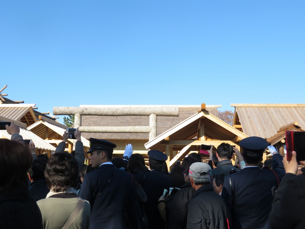 大嘗宮一般公開の最終日で日曜日、大変混雑していたので、夜のはとバスツアーまでゆっくり皇居内を散策する予定が列に並ぶ羽目に・・・並ばないと進めないのでそうしましたが、1時間はゆっくり、ゆっくりとノロノロ歩きになりました。せっかく並んだのですが人が多くまともに見えず、でした。