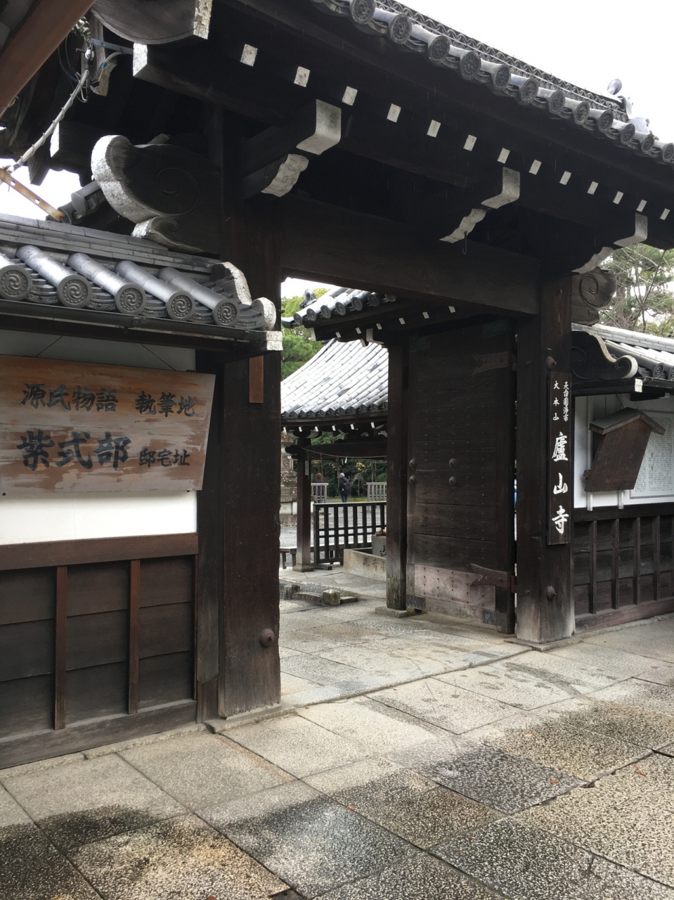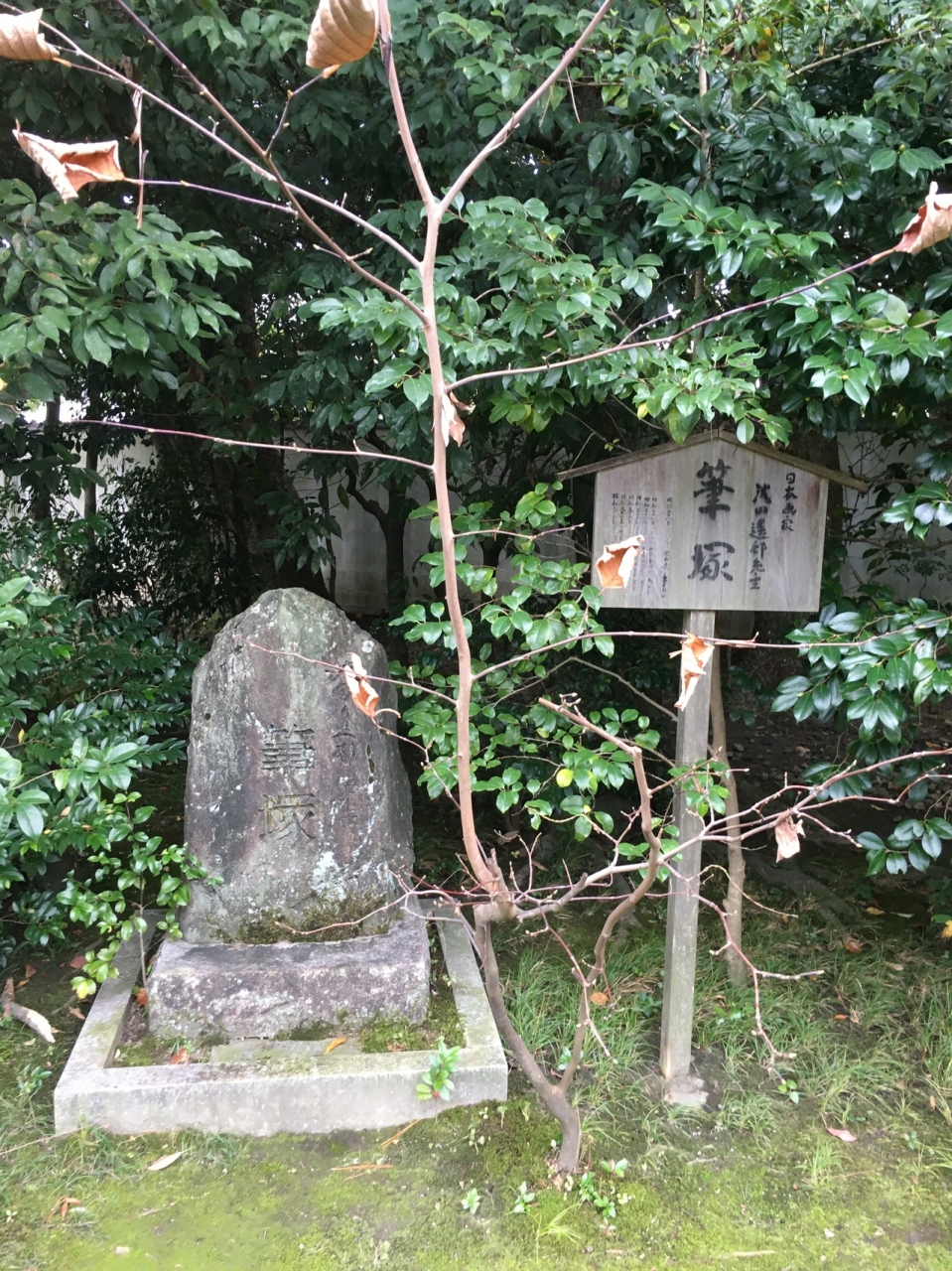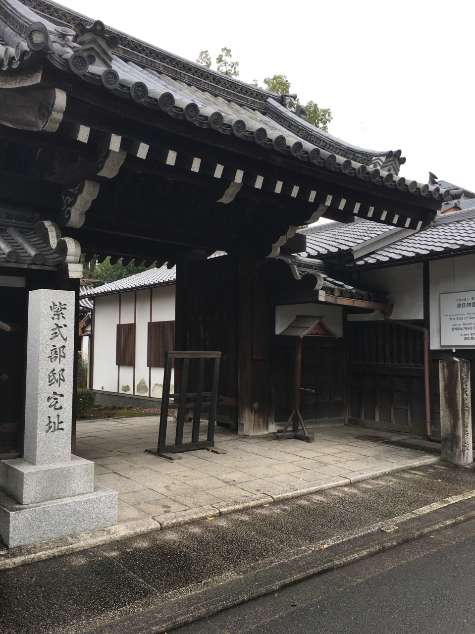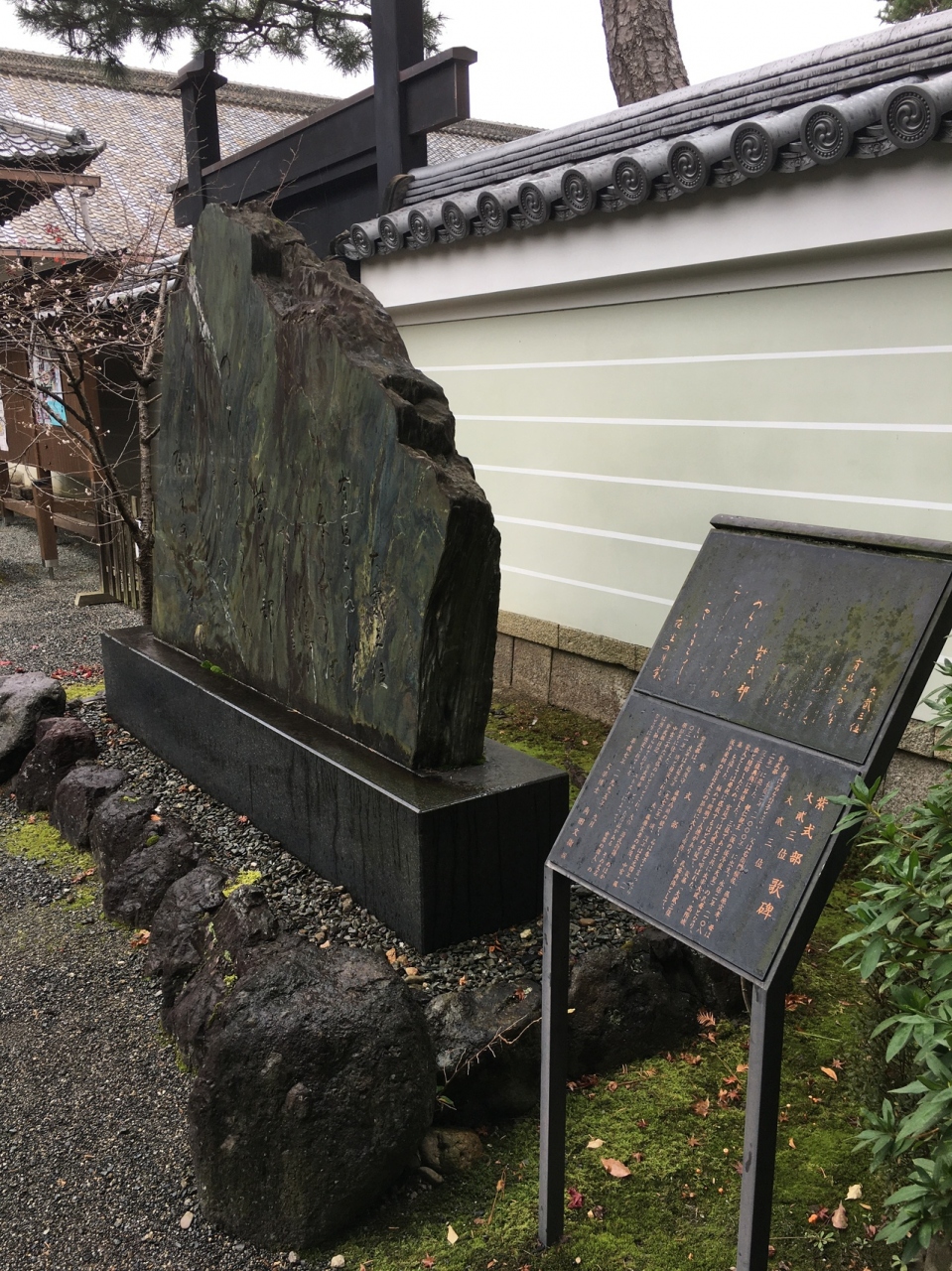 紫式部邸宅跡と出入口に石碑がありました。黒い石に歌碑もありました。奥には、宮内庁管理のお墓があり、境内でも場所によっては雰囲気が変わるお寺でした。筆塚もあり、立派な山門が目立ち、参拝客が絶えないお寺です。