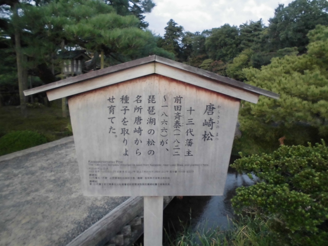 兼六園の唐崎松の近くにある橋です。唐崎松の紹介看板の真後ろにあるので見つけるのは意外と容易いです。この橋は他とは違って欄干もあり平らなので歩きやすくて怖さを感じることもありません。そういう意味で歩く人にはいい橋です。