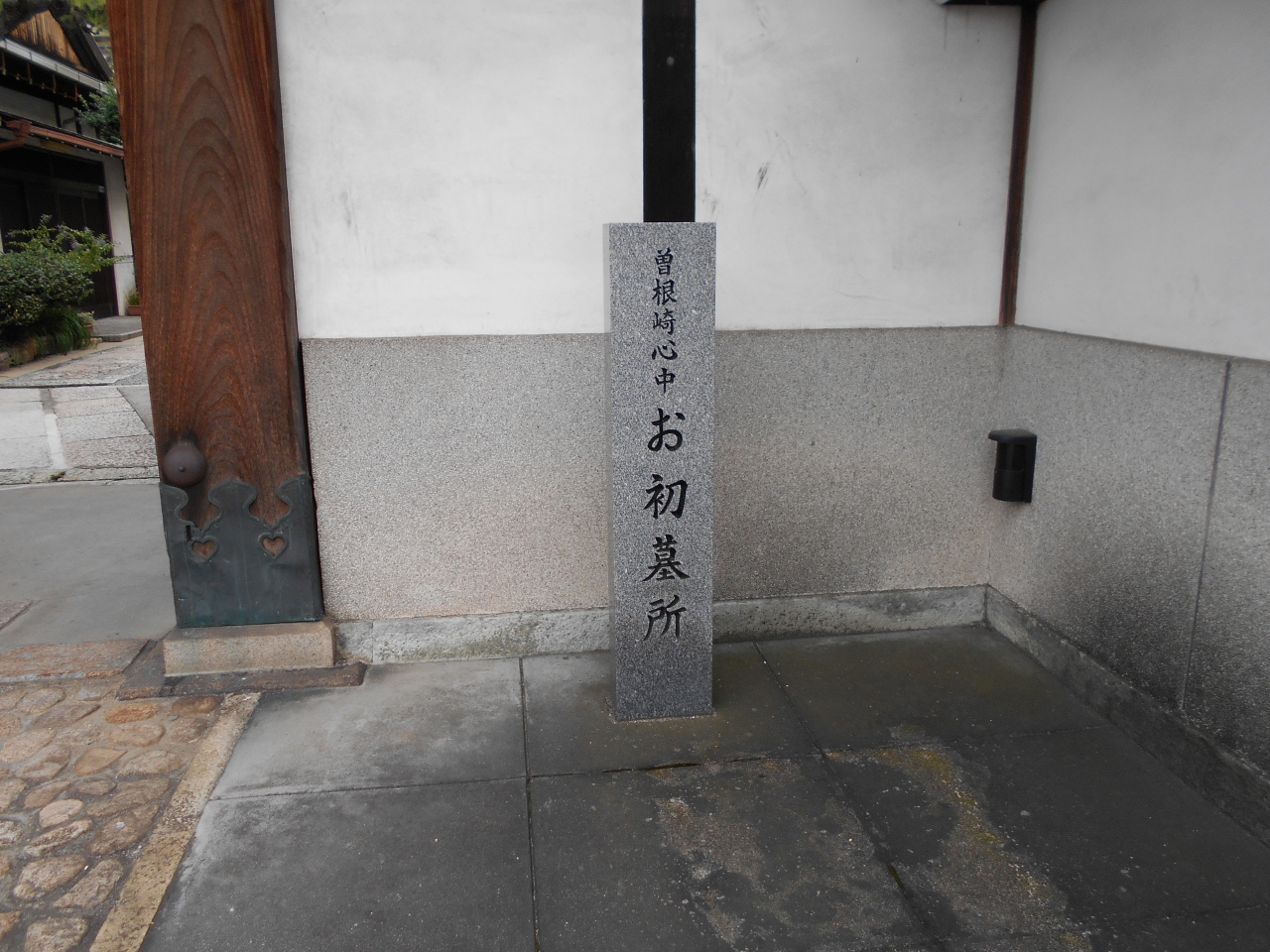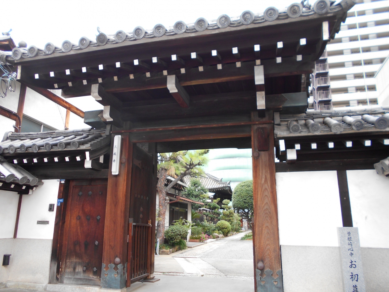 大阪ミナミの高津宮の南東に建つ本門法華宗の久成寺の境内に眠る人形浄瑠璃「曾根崎心中」のお初の墓。曾根崎心中の舞台としてキタのお初天神が有名ですが主人公の天満屋遊女お初はここに眠っています。天満屋が久成寺の檀家だったからのようです。当寺の山門前に墓所碑がひっそりと建っています。